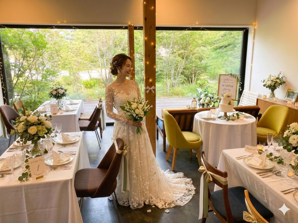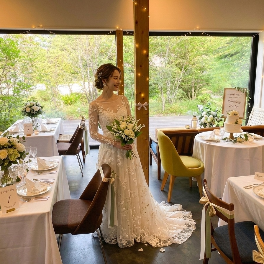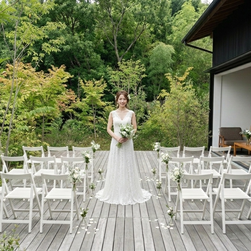 恵那峡から近い恵那のフレンチレストラン。自然の中で行われる二人のための結婚式。